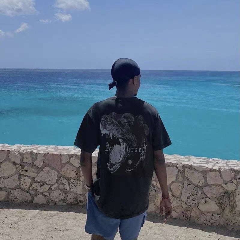 Askyurself T-shirts round Neck Short Sleeve Washed-out Vintage T-shirt